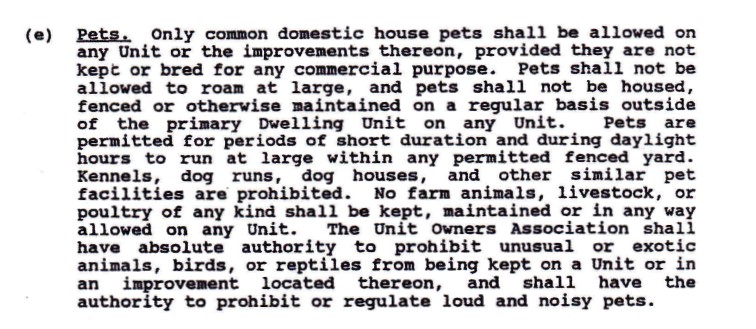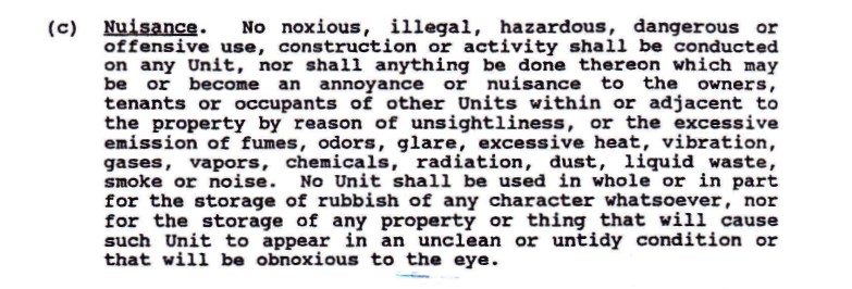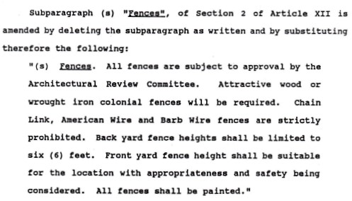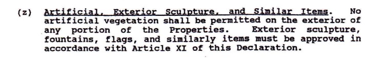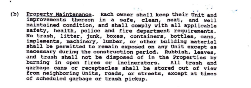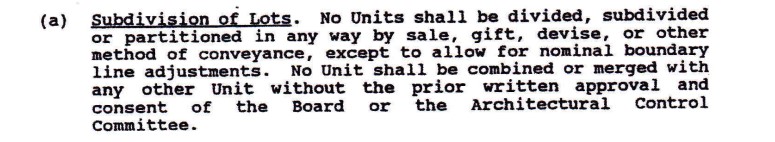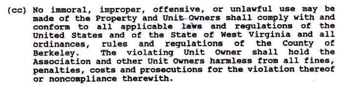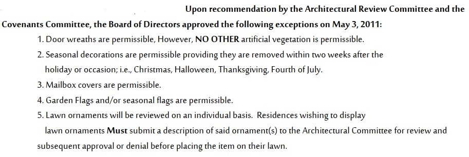 At the July 23, 2012 Board of Directors meeting the Board voted that it was no longer necessary to enforce this section of our covenants.
