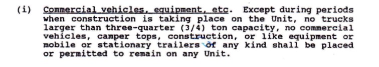 The Board of Directors voted not to enforce this covenant on utility vehicles at the April 8th,2014